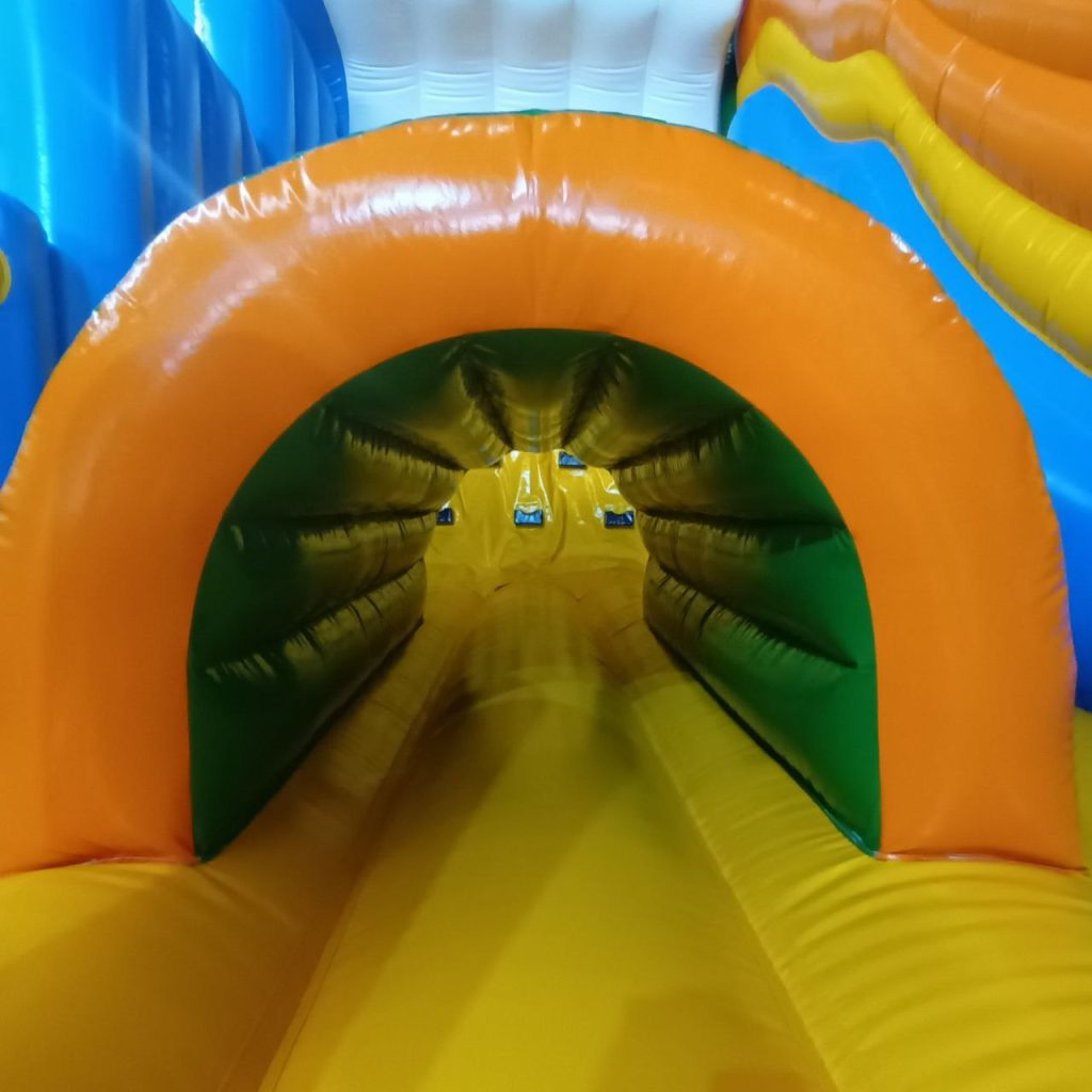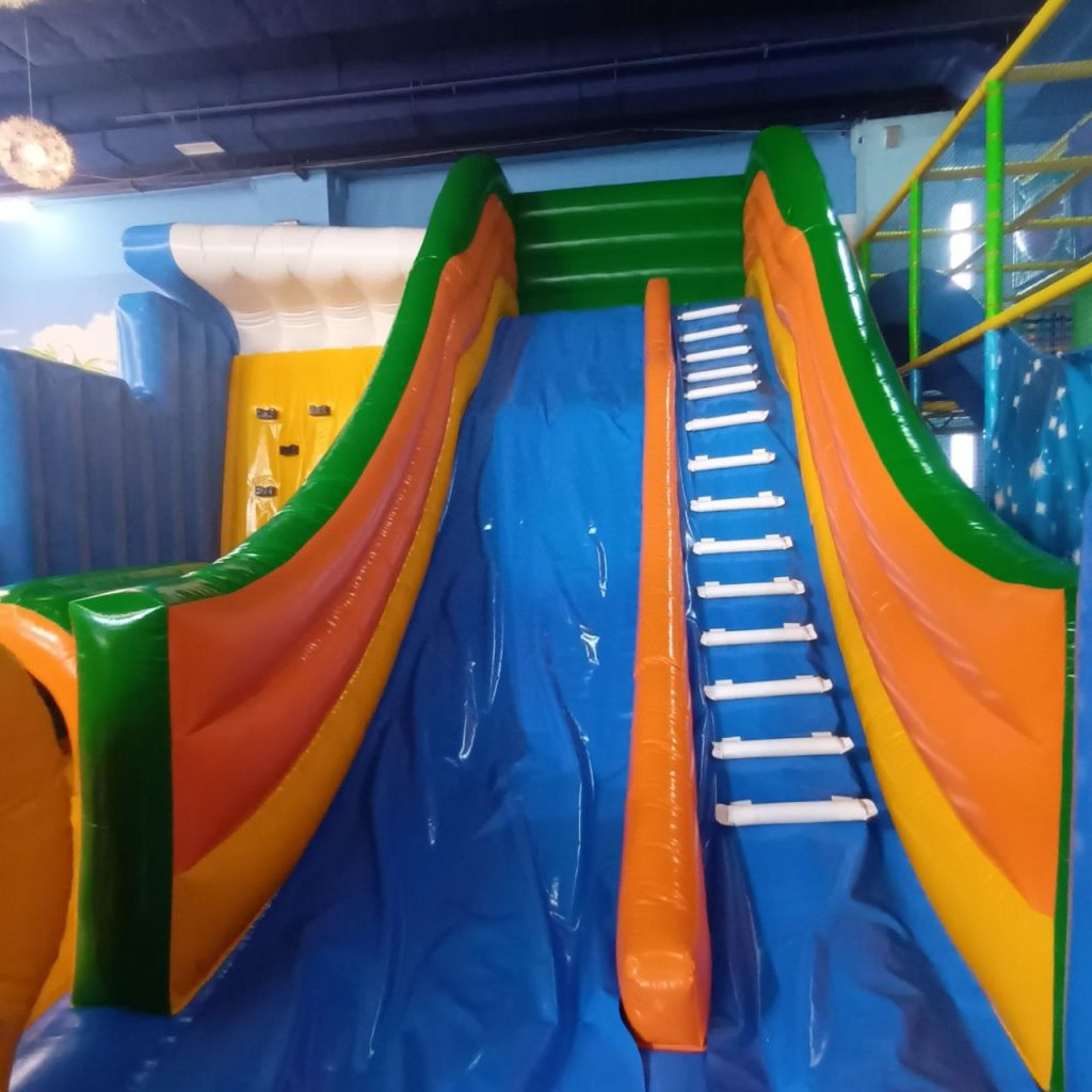 – весело стрибаючи на натяжних батутах або надувному містечку;