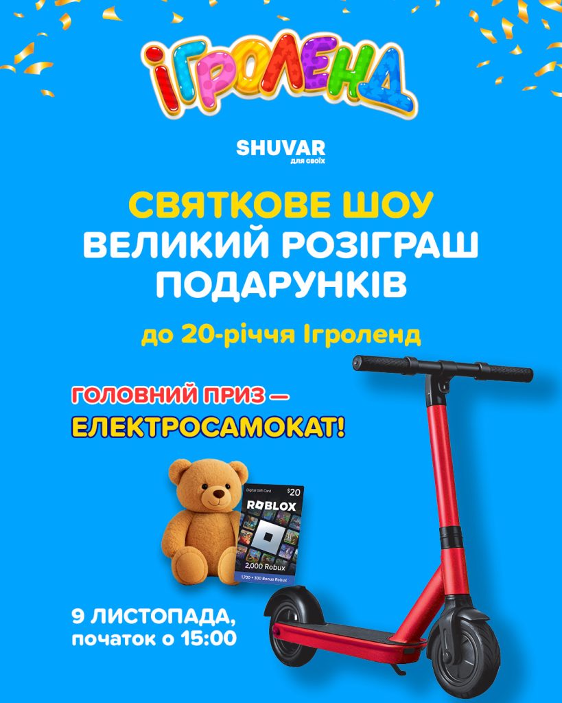 Святкуємо 20 років Ігроленд і запрошуємо тебе 9 листопада до ТЦ “Шувар” на грандіозне свято з подарунками!